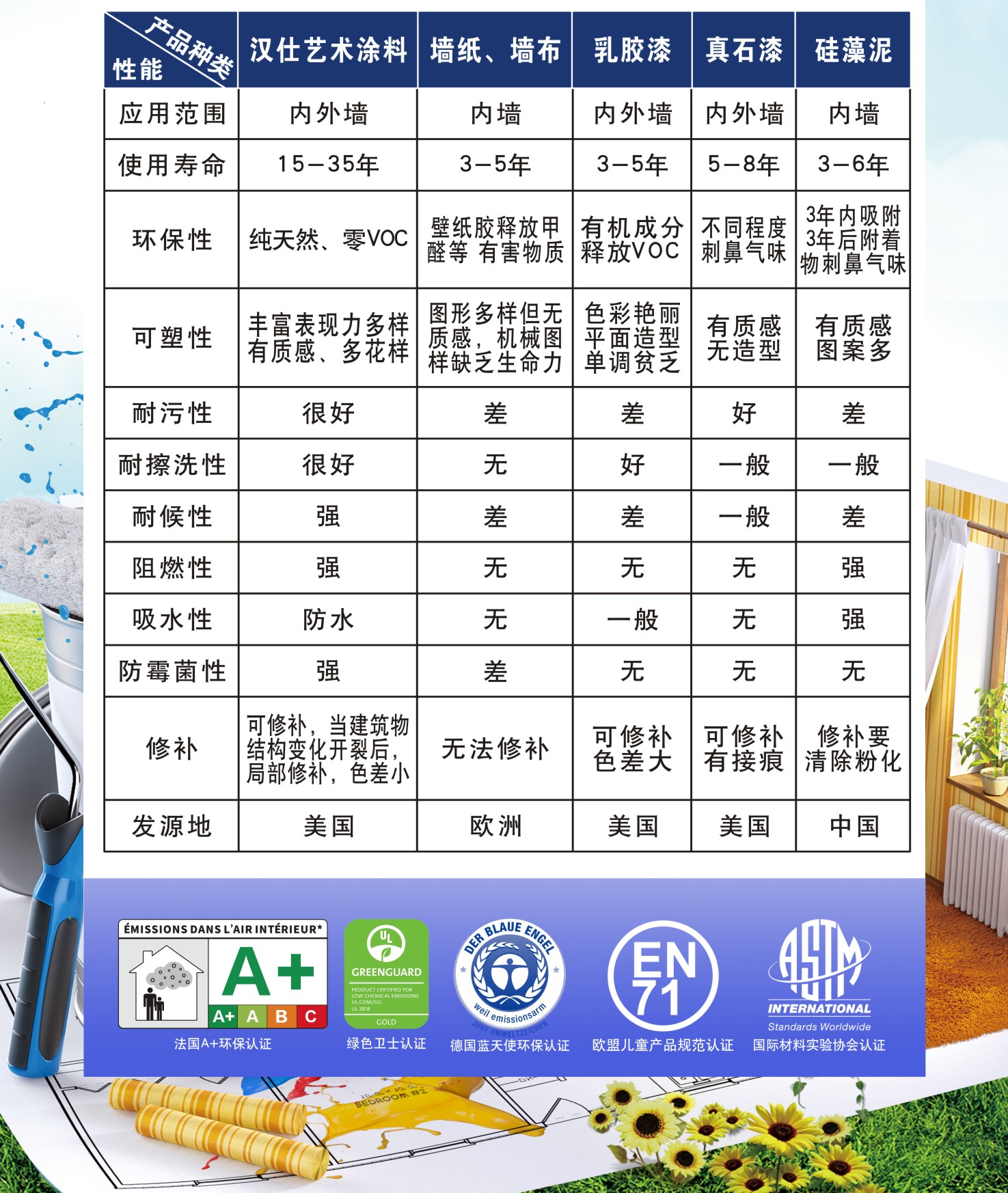 汉仕艺术涂料 与其他材质对比